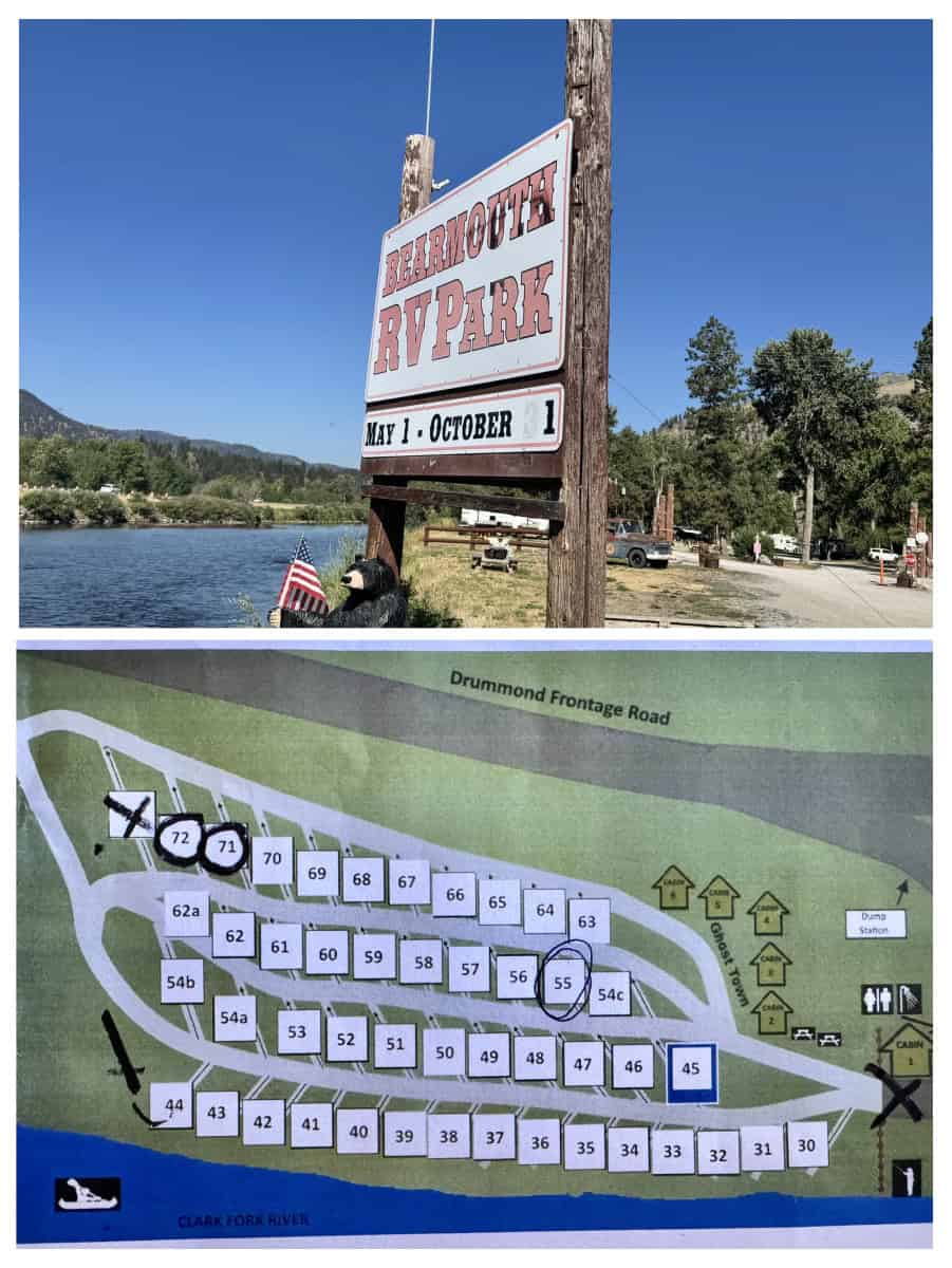 We arrived at Bearmouth Chalet RV Park around 2:30 pm Mountain Time. The nice lady who runs the place gave us a choice of which site we wanted. The site is a gravel pad but very level with water and electric hookups. The park is on the beautiful Clark Fork River.