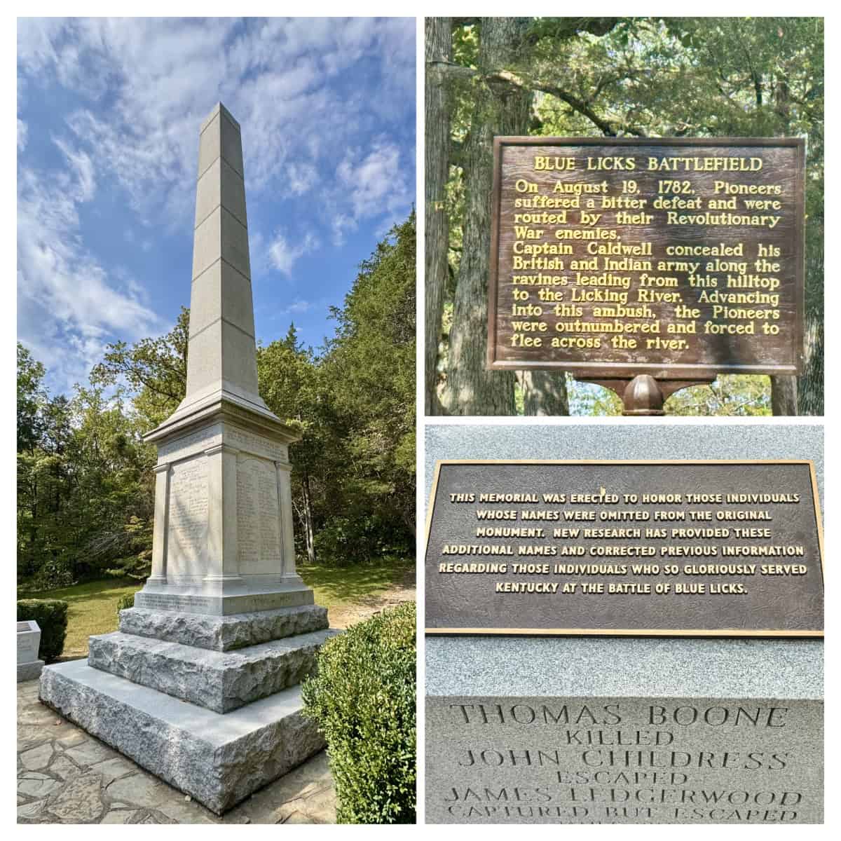 In 1918, some 136 years later, an estimated 10,000 people gathered at the site for the dedication of Blue Licks Battlefield State Park and the memorial erected to honor the fallen soldiers with the words of Daniel Boone, “Enough of honor cannot be paid” inscribed on the monument.