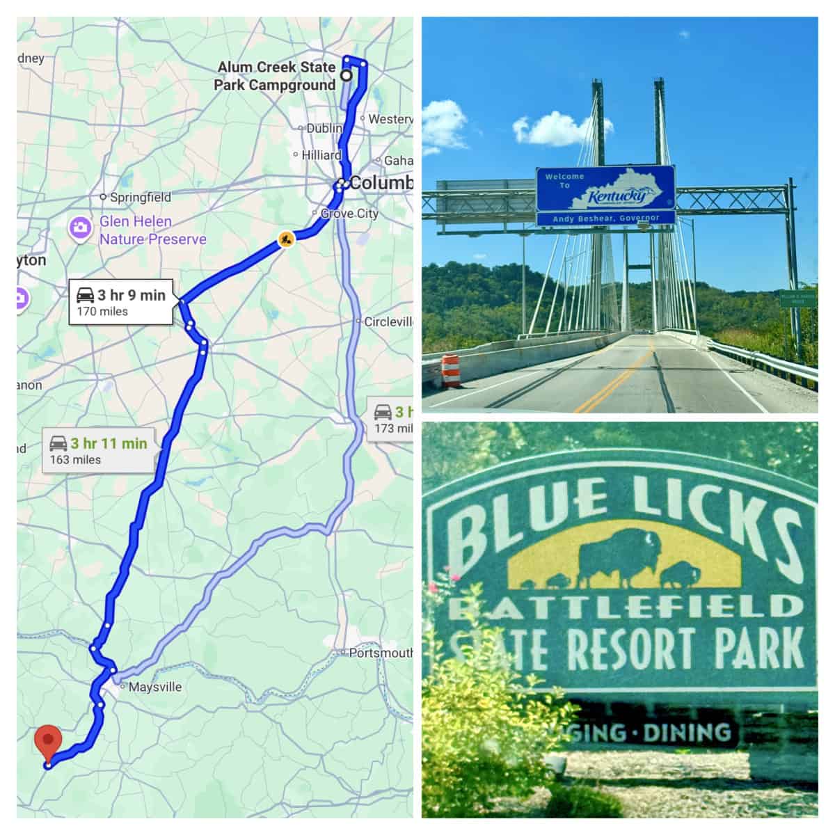 We left Alum Creek State Park Campground in Delaware, Ohio on Labor Day around 10:30 am (after a 45-minute wait at the campground’s dump station) for a 3 1/2 hour drive to Blue Licks Battlefield State Resort Park in Carlisle, Kentucky. Cindy is usually careful to make sure we don’t travel on a holiday because of how busy it can be at the campground’s dump station and the increased traffic on the roads as people hurry back home after their long weekend. But this one slipped by her so we knew we’d have a long wait at the dump station.