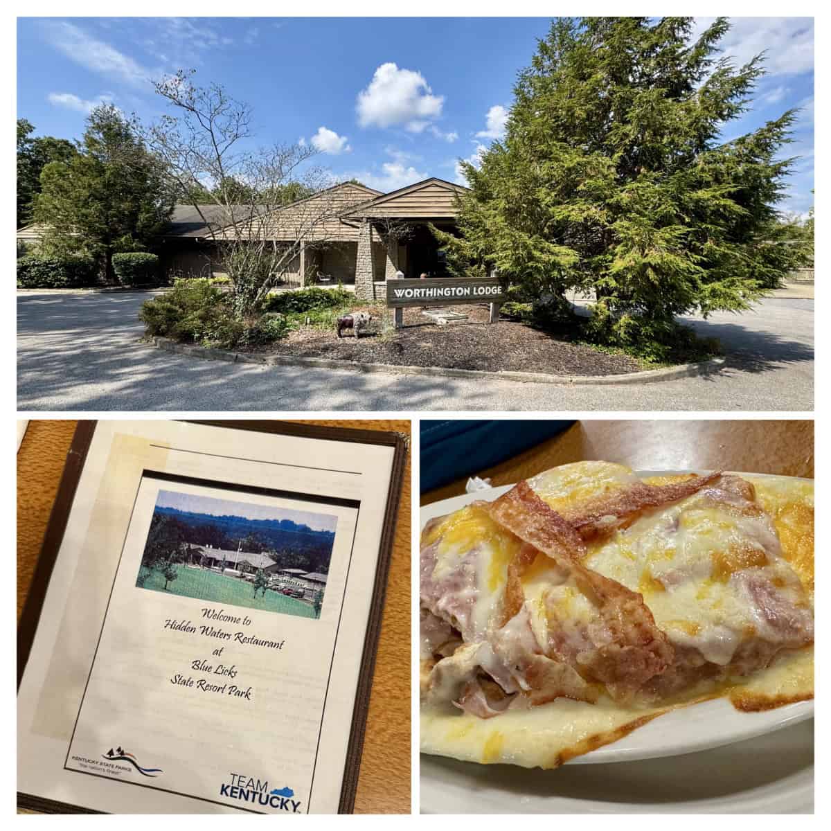 At lunch we drove over to the Worthington Lodge and their Hidden Waters Restaurant for lunch. Cindy was delighted to see they had Kentucky Hot Brown on the menu, but we specifically asked them if it was available in its entirety. That’s because when we were in Kentucky 11 months ago at Mammoth Caves and she ordered it, it was missing her favorite ingredient.