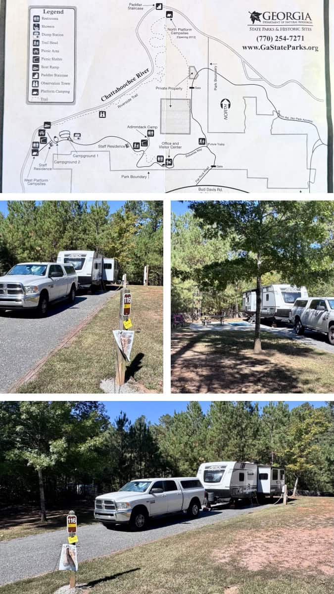 After getting tired of waiting for USACE to make a decision about whether they would close Whitetail Ridge Campground, we left there around 12:30 pm on Wednesday, October 1, 2025 and drove about an hour north to Chattahoochee Bend State Park, near Newnan, Georgia for a 10-night stay. It’s more expensive than the USACE campground and Cindy had to do some shuffling with our stay after this one, but we decided we did not want to keep worrying about if or when Whitetail Ridge would close.