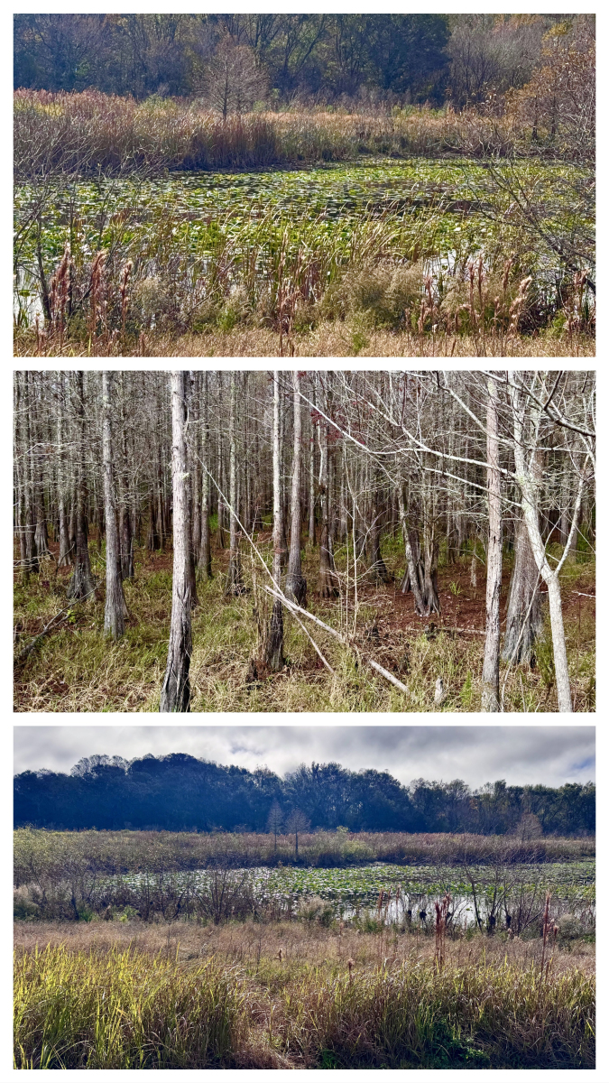 There are lakes and natural creeks that allow for fishing and boating. Mac Lake boasts a 75-foot dock for fishing or just enjoying the wonderful view. Due to being a natural habitat for alligators, swimming is not allowed.