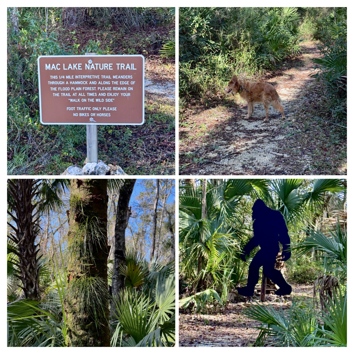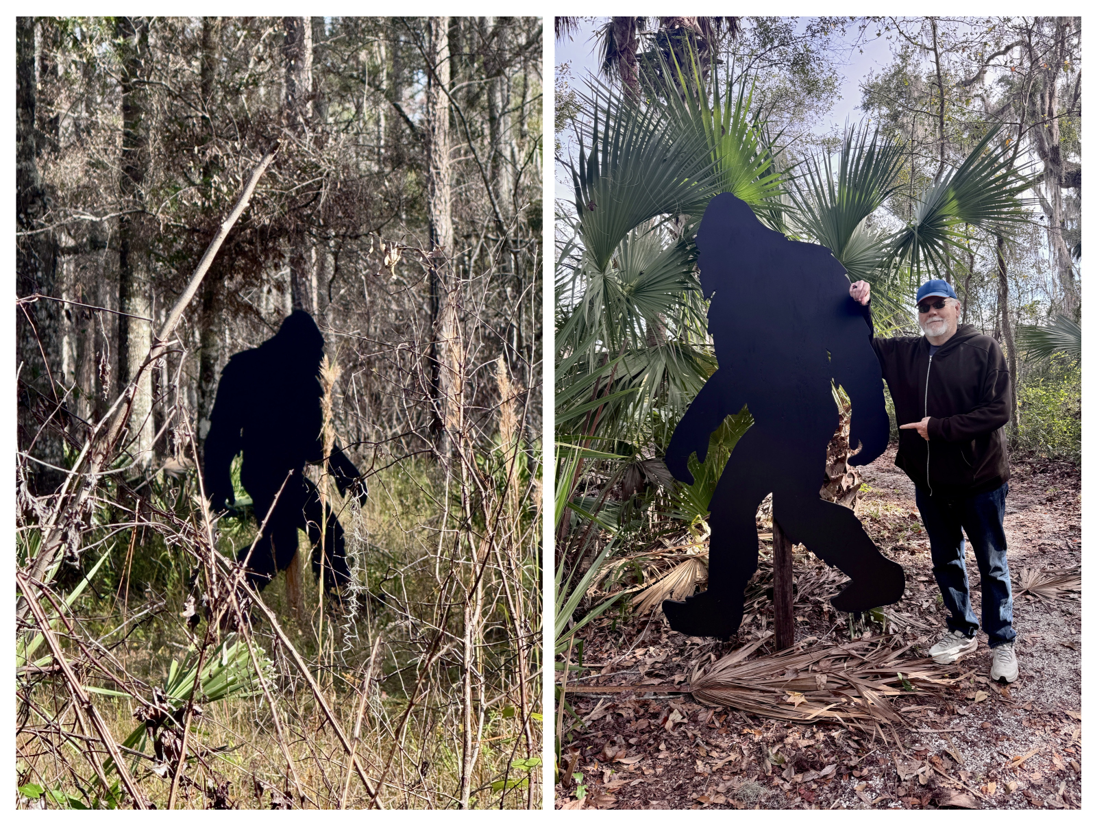 It turns out that the life-sized Skunk Ape cutouts were erected on the trails by the Mid Florida Bigfoot Research Group to raise awareness (and have a little fun, I’m sure) of the legendary Bigfoot.