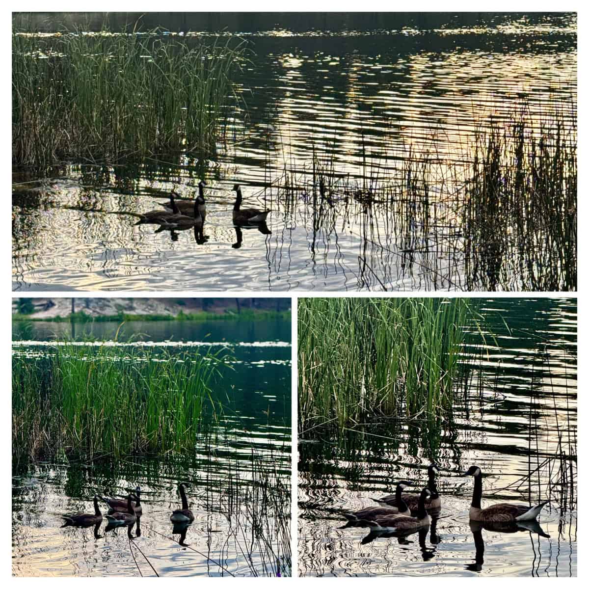 Later, just before sunset, we took Bella on a walk over to Legion Lake. We saw the same family of geese we had seen 6 weeks earlier and, oh my, how the two little goslings had grown! They were now almost as big as mom and dad.