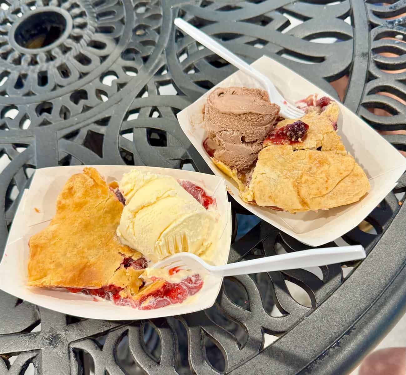 Wednesday was mostly another relaxing day. It began raining in the late afternoon. After dinner, we drove into Custer (the town) to fuel up Voyager and to fuel up ourselves with dessert at the Purple Pie Place. Cindy had blackberry pie ala mode and I had cherry pie in the same mode.