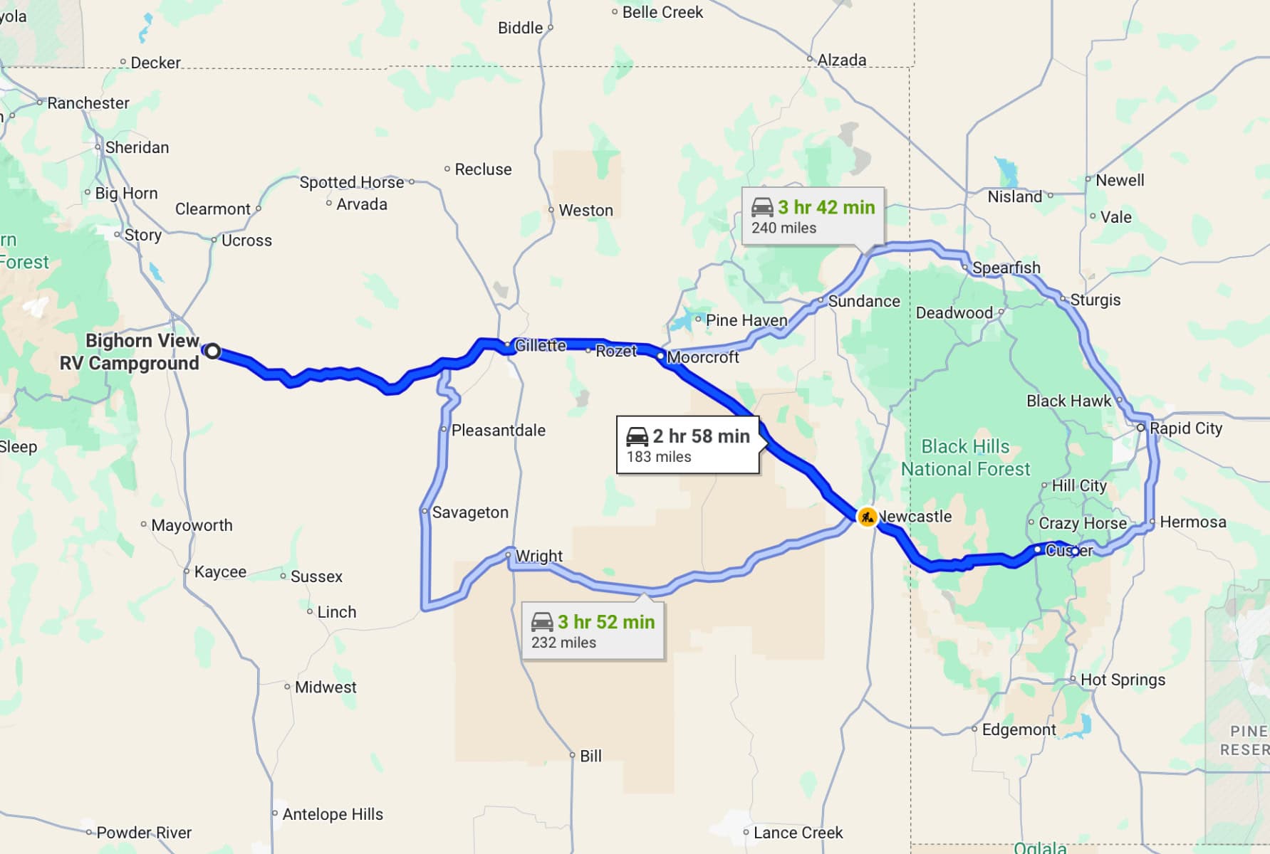 Monday morning July 21, 2025 I was up at 6:30 am. We had full hook-ups at Big Horn View RV Campground so I was flushing our gray and black tanks and filling our fresh water tank because we wouldn’t have a water hook-up at Custer State Park, only electric, for our three-night stay.
