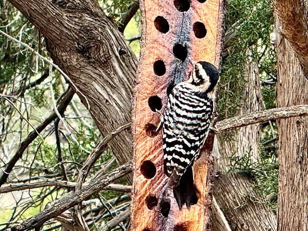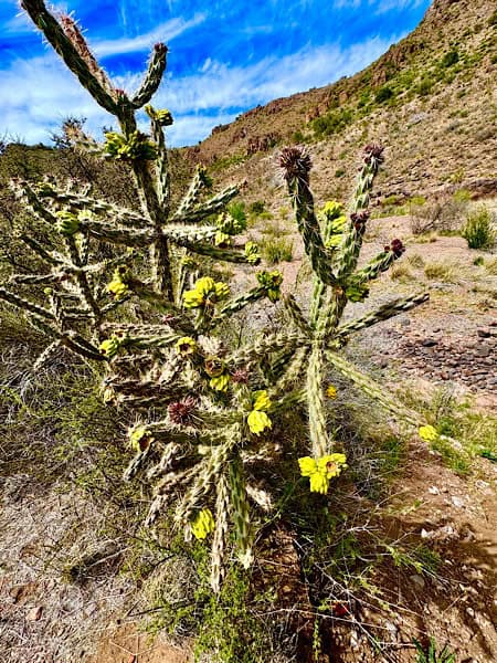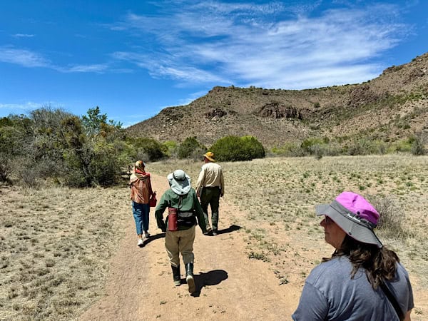 Later, at 2 pm we went on a “Meditative, Mindfulness Desert Walk” with a couple of other people that was another interesting program run by a local specialist in meditative and mindfulness living named Synsorae Eutsay. We spent about 2 hours walking around the base of a mountain in the Davis Mountain Range while practicing breathing techniques, mindfulness exercises and meditative routines. Our trek took us across a dry creek bed and a small glade that was set up with benches where we relaxed for a while. We also got to see some White Tail Deer, Yucca plants in bloom and some beautiful Barrel Cactus.