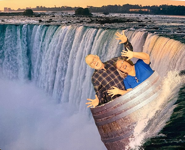 Then we spent about an hour a half strolling around the Canadian side of the falls and taking photos of them from our northern neighbor’s side of the river. Lots and lots of people were doing the same and we heard/saw many different nationalities represented in the milling crowds. We stopped at a store to find Cindy a Canadian hot pad for her collection and both decided to use the restroom. Be sure to check out the accompanying photos to see the surprises we saw in our respective restrooms.