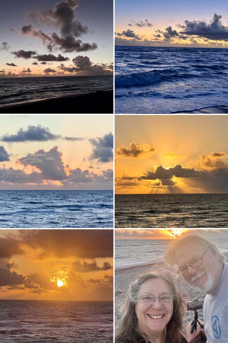 Sunday morning we were up at 5:30 am so we could be down at Jupiter Beach to see the sunrise. I’ve always thought sunrises and sunsets were beautiful, but seeing them with Cindy makes them both even more so. Cindy loves watching the sun come up and I love seeing her happy, so it works out nicely.