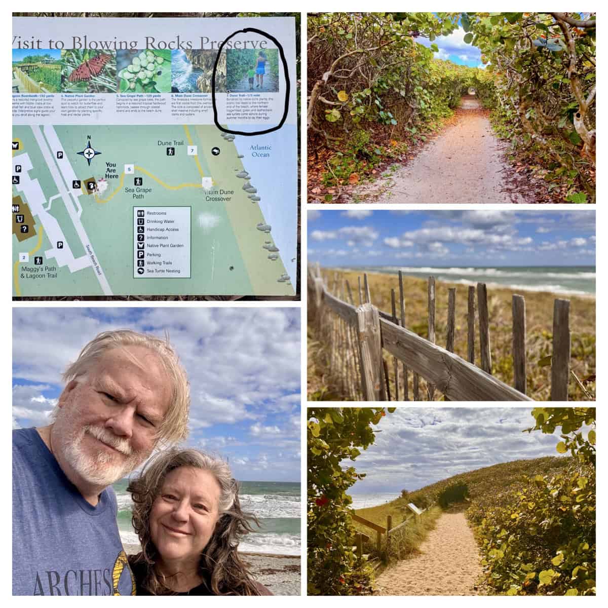 Before leaving Blowing Rocks Preserve we took a stroll along the 1/3-mile long dune trail that runs parallel to the beach. This trail wends its way through an intermittent tunnel of Sea Grape trees and various other vegetation, which makes for a wonderful experience as you walk in and out of the tunnel. What is even more amazing is when you learn that this dune trail used to be the original A1A road through the area.