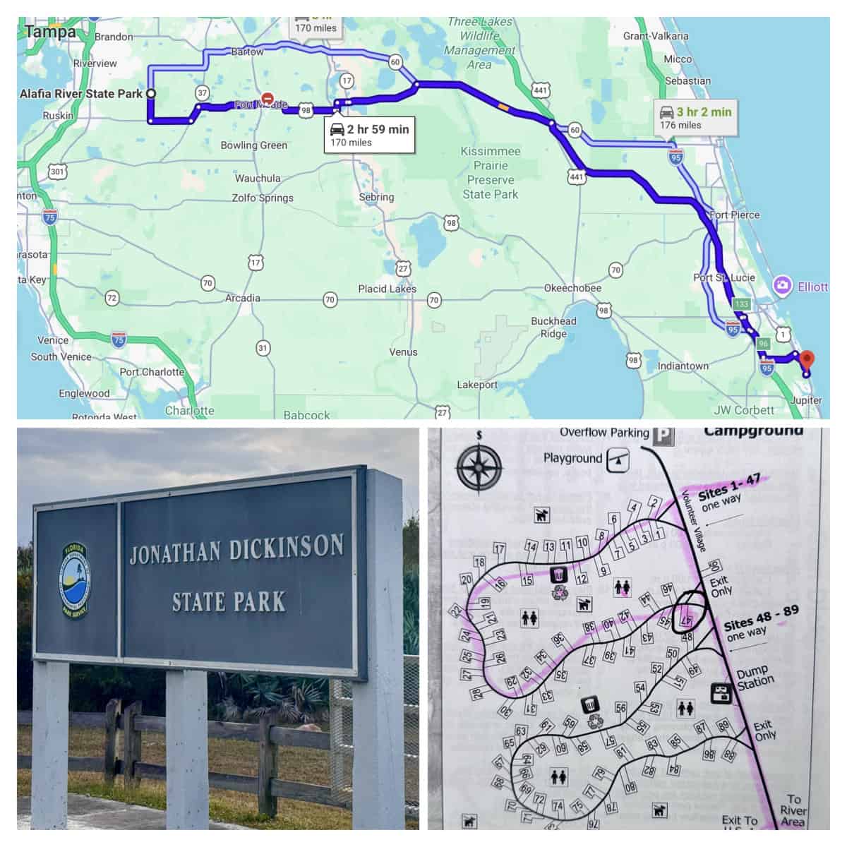 We left Alafia River State Park in Lithia, Florida on Tuesday, January 13th around 10:15 am for what was supposed to be a 3-hour drive to Jonathan Dickinson State Park in Hobe Sound, Florida where we would be spending 14 nights. The drive was closer to 5 hours because of the route our GPS chose, which took us through heavily-trafficked U.S. 1 north of Hobe Sound for 30 miles. Traffic lights every two blocks along that strip of highway did nothing to help our forward momentum. Sometimes I think AI has infected our GPS and it takes sick pleasure in mapping out weird routes for us to endure.