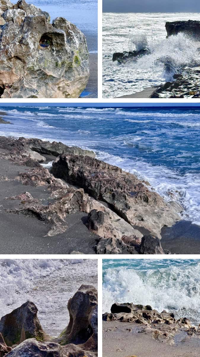 It gets its name from what the ocean waves and rocks along the shore do during rough seas at high tide (that’s why we arrived at high tide). Waves of water hit the coquina rocks and spurt skyward through holes. Some have stated they’ve seen the water shoot 50 feet into the air. I guess the ocean wasn’t rough enough while we were there because we didn’t see anything go that high.