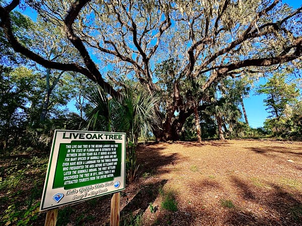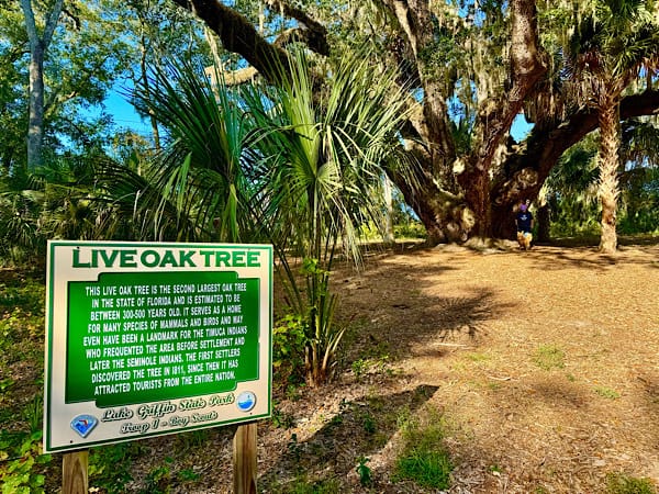 This campground sits on the west side of Lake Griffin (hence the name), a 9,500 acre body of water that is the 8th largest lake in Florida. We took a pontoon boat ride tour on the lake and enjoyed the experience. The state’s second largest live oak tree is also in Lake Griffin State Park and it is a sight to behold!