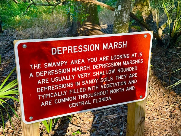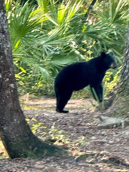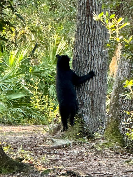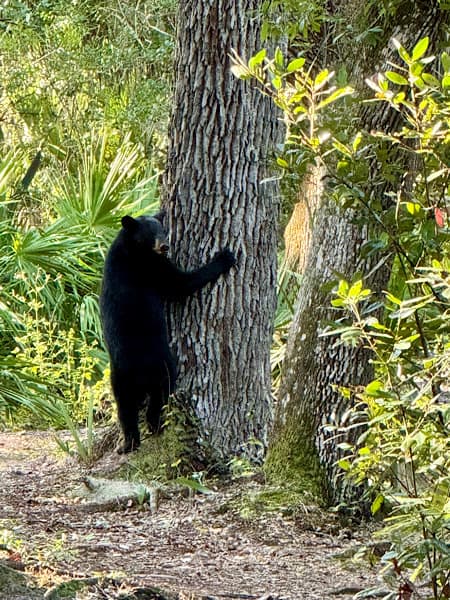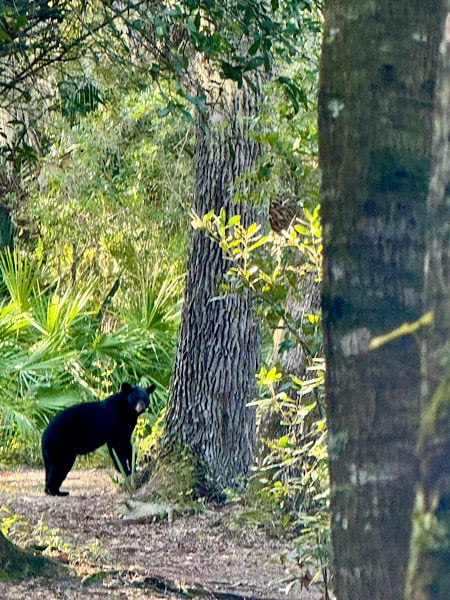 The park has two hiking trails totaling two miles in length and we hiked both of them many times during our stay. These trails afforded us the opportunity to see several different habitats including forest, sandhill, swamps and marshes. We were told we might see raccoons, bobcats, coyotes and bears, but we only saw one of those, a bear that was on a trail we were on our first full day. It was an exciting start to our stay.