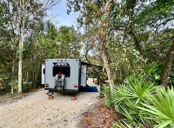 Lake Griffen State Park is 620 acres in size with 40 campsites in a compact loop within a natural Florida environment. All of their sites have water and electric and some sites also have sewer service. They have a dump station but it is in a difficult location to use, depending on where your site is bringing you from. We didn’t have sewer at our site but we chose not to dump before leaving to avoid the difficulty of getting into it. We also knew we would have sewer at our next site and could dump there.