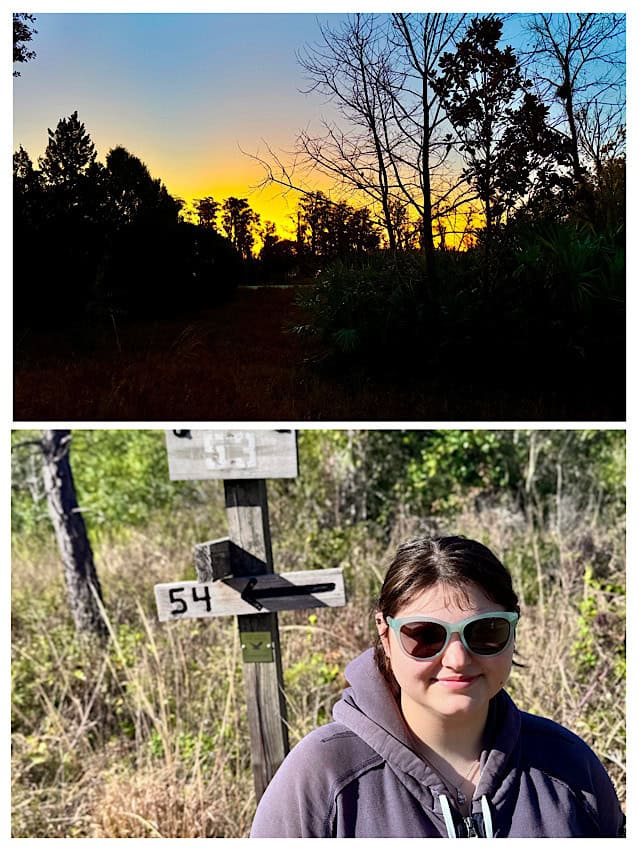 Thursday we drove back to Orlando to pick up Abby for the second portion of her stay with us during her school holiday. Friday I took care of some tasks around Nomad and that night we watched “Love Actually” and made Abby put a pillow in front of her face a few times so she couldn’t see the screen, lol! Cindy and I hadn’t seen it since it was first related back in 2003. Saturday morning we hiked another trail and in the afternoon I played Yahtzee for the first time (really) and Abby beat both Cindy and I. Then Abby and I played Scrabble and she won both of those games.