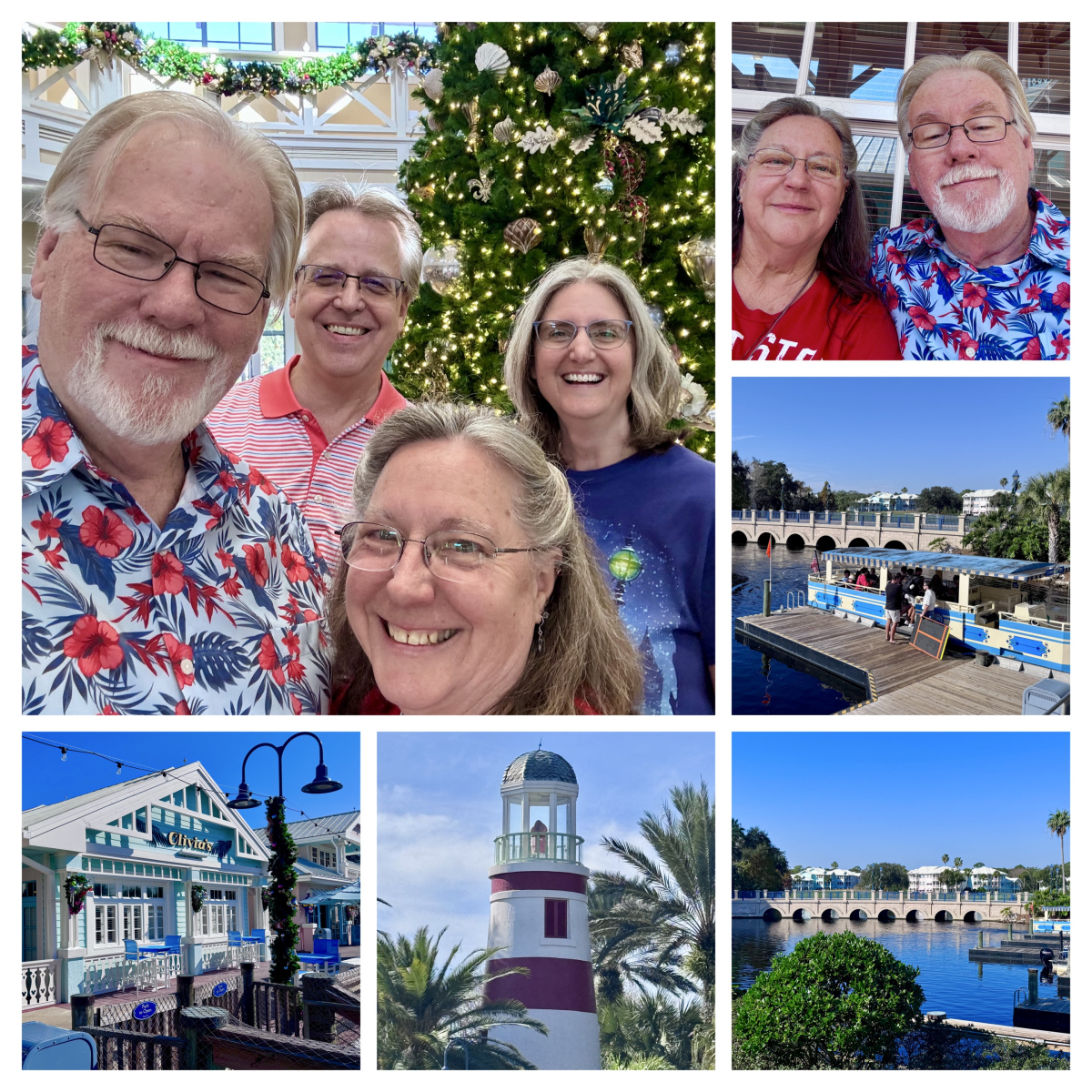 We ended up driving over to Port Orleans and eating at Riverside. Same dismal attitude, but at least we were able to get some food. Then we walked around, for as long as I could with my knee and foot, and chatted while enjoying the scenery. We always have such a good time visiting with Kirk and Laura.