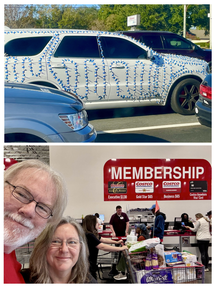 After breakfast we had errands to run and things to pick up at Costco and Publix for our Xmas Eve dinner. While on busy Highway 27 we saw a car in the next lane over that was covered in Xmas lights. Abby grabbed a photo of it for me. Both Costco and Publix were madhouses, but that’s expected a couple of days before Santa’s annual visit.