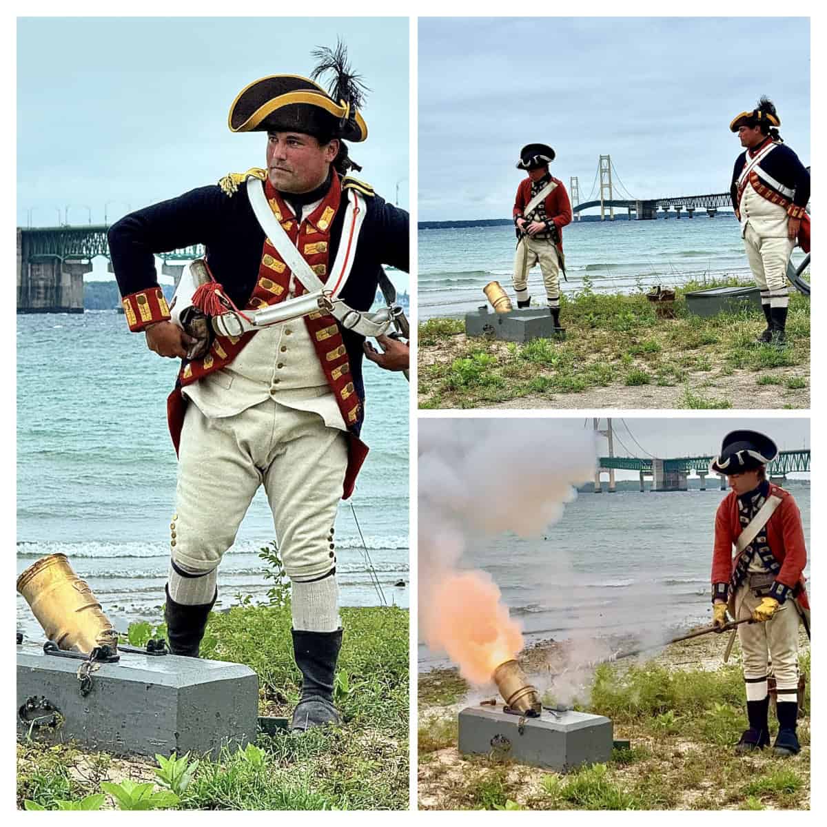 The first thing we saw was a demonstration of mortar firing by re-enactors compete in British uniforms outside the fort on the shore of the lake. The main re-enactor was very good at explaining the history and the processes. Then we went inside the fort. The fort and its contents were all rebuilt to original specifications because the original was burned to the ground a couple of centuries ago. We enjoyed a presentation of food preparation during the 1770’s, saw an in-progress excavation site, and watched a musket rifle firing demonstration within the fort.