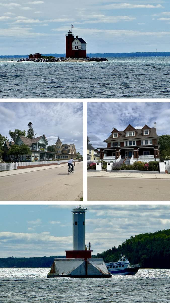 Monday morning, August 18th, we were up at 6 am. we fed and walked Bella, ate a light breakfast ourselves and then headed for the Shepler’s Ferry Boat dock in St. Ignace which was only an 8-minute drive from the campground. The ferry ride was how were were getting to Mackinac Island for our visit that day. The email they send with your reservation confirmation AND their website both advise you to arrive an hour before your departure time. Our departure time was 8:30 am so we dutifully arrived at 7:30 am. Well, we could have slept another hour because there was absolutely NO reason to be there an hour early. We watched people walk up and board 2 minutes before the ferry departed. These were probably locals who knew they didn’t have to be there until the ferry left.