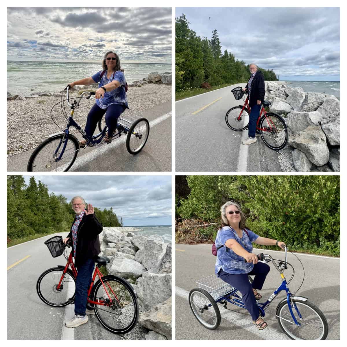 Two amazing things about our bike ride: first, we biked the entire perimeter of the island, a distance of 8.1 miles and had a lot of fun doing it. Second, my left knee did NOT hurt while pedaling the bike. It still hurt like heck when standing, walking and sitting, but not while pedaling. Very weird but also a very welcome weirdness because I expected constant agony.