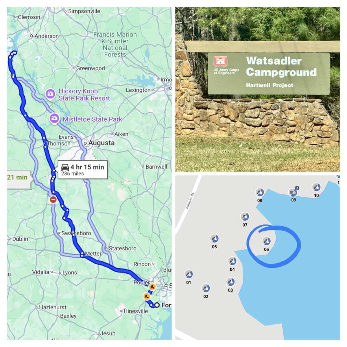 We left Fort McAllister Historic State Park around 9:15 am on March 19th for a 5-hour drive to Watsadler Campground in Hartwell, Georgia. This was our first time at this campground and this part of Georgia.