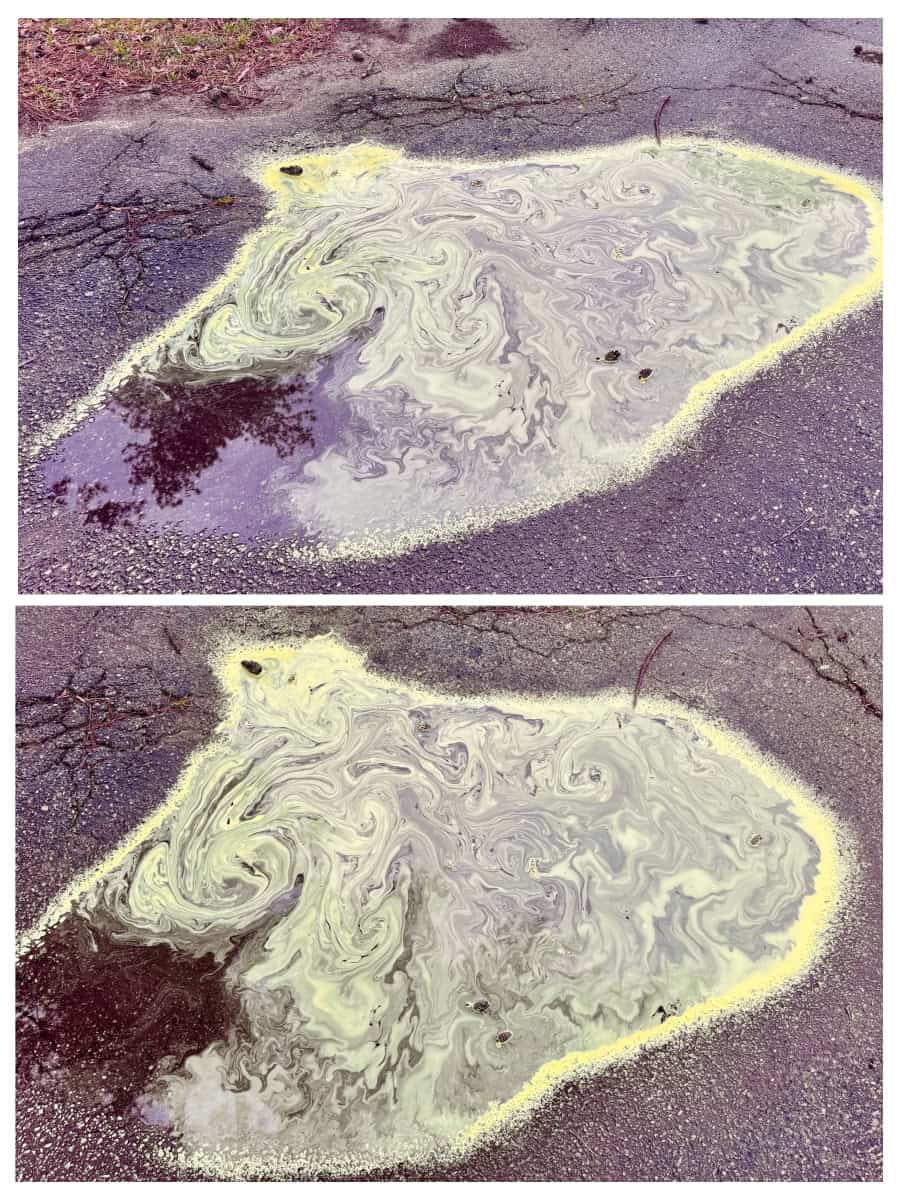 During the walk around the campground we saw lots of puddles from the rain. They were all loaded with, and colored yellow from, the massive amounts of pollen in the area. Poor Cindy is very sensitive to it, so her allergic reactions were off the charts during our stay. You can see from the photos in the album that the puddles looked like pools of chemicals mixed together into some type of abstract art.