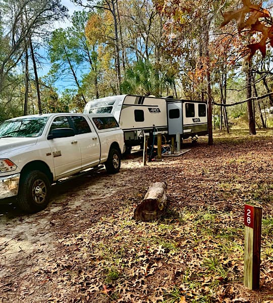 We left Lake Griffin State Park in Fruitland Park, FL on Friday, December 22, 2023 and drove a little over an hour southeast to Wekiva Springs State Park in Apopka, FL, just north of Orlando. We like to be at this campground during the holidays as it is not too far from our Florida kids/grandkids.