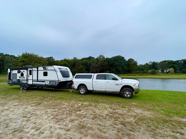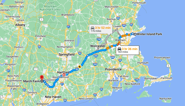 Saturday morning, September 23rd we left Winter Island Maritime Park around 11:30 am and drove a little over 3 hours to the March Farm in Bethlehem, Connecticut where we would stay for one night thanks to their participation in the Harvest Host program. March Farm is an apple orchard where you can pick your own from trees or buy their fresh picked apples in their on-site store. They also had a wide variety of baked apple goods and some other produce. We parked next to the large pond on their property around 2:30 pm and walked up to the store to get some apples, apple cider donuts and apple fritters.