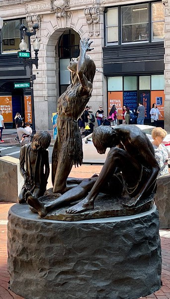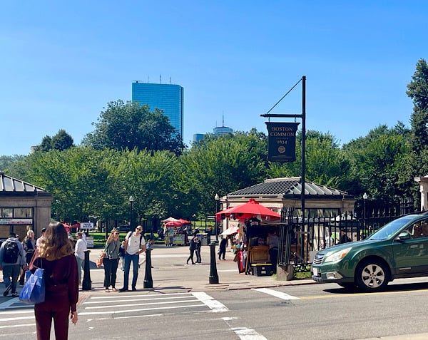 After walking 5 1/2 miles through Salem on Wednesday, we were pretty tired BUT we made sure we were up, had breakfast, were dressed and down at the Salem train station by 8:30 Thursday morning for the 45 minute ride into Boston. Lots and lots of commuters heading to work and school meant we ended up sitting in the “jump seats” at the front of the car instead of in a nice, comfortable window seat.